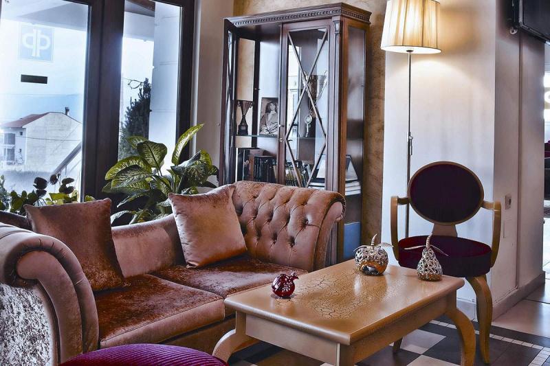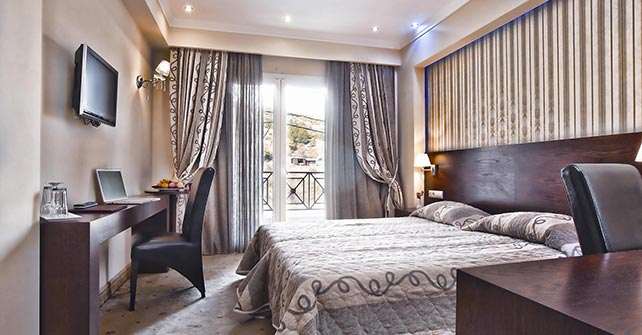 Το ξενοδοχείο διαθέτει 36 πολυτελή δωμάτια και δύο προεδρικές σουίτες απαράμιλλης αισθητικής. Ο επισκέπτης του μπορεί να χαρεί τη θέα από το μπαλκόνι του είτε προς τον κάμπο , που απλώνεται μπροστά του, είτε προς το βουνό, το οποίο το χειμώνα με το χιόνι έχει την τιμητική του.Οι πελάτες μπορούν να απολαύσουν τον καφέ ή το ποτό τους στη κεντρική σάλα του ξενοδοχείου, δίπλα στο τζάκι, υπό τους ήχους του πιάνου.
